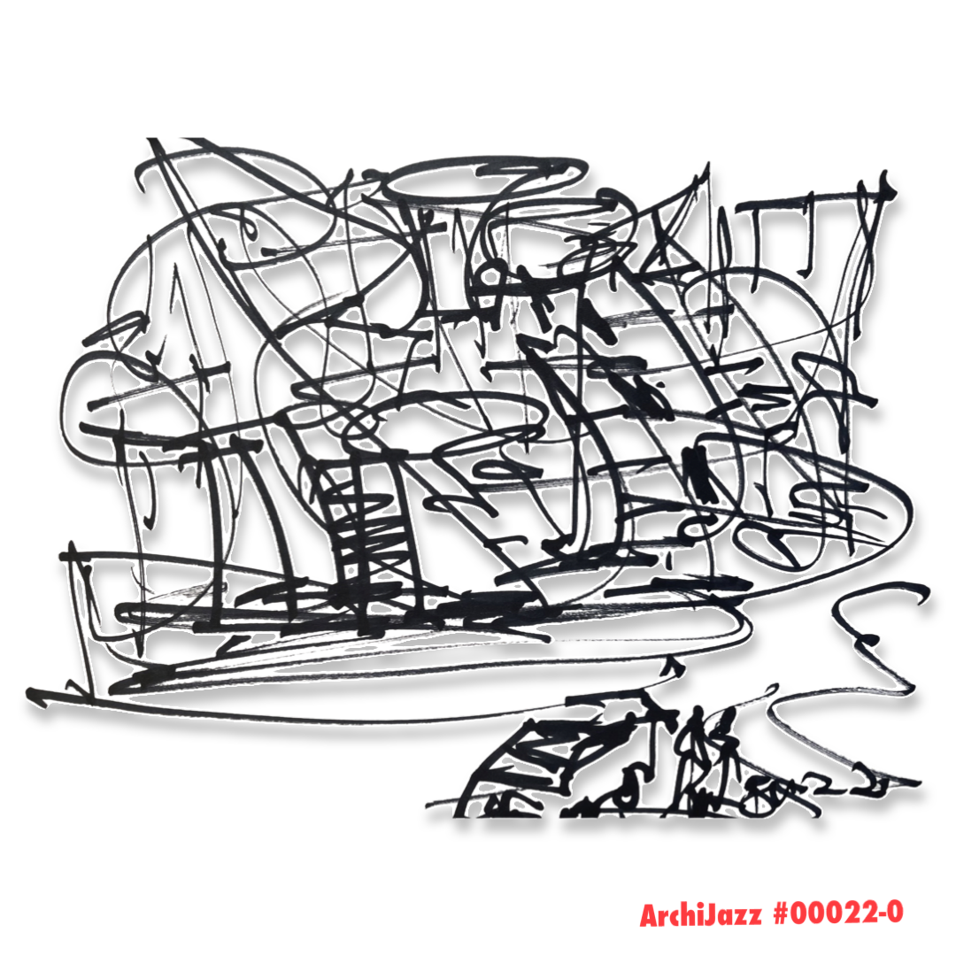 ARCHIJAZZ begins not with a plan, but with a pulse. A single, confident line streaks across the page, a bass note establishing a rhythm. This is the horizon. Then comes the improvisation: swift, gestural lines converge towards a vanishing point, not as rigid guides but as spontaneous riffs. A vertical streak defies the grid, a skyscraper’s bold solo. Curves emerge, not from a compass but from the wrist’s fluid motion, suggesting arches and domes as if played by a saxophonist.